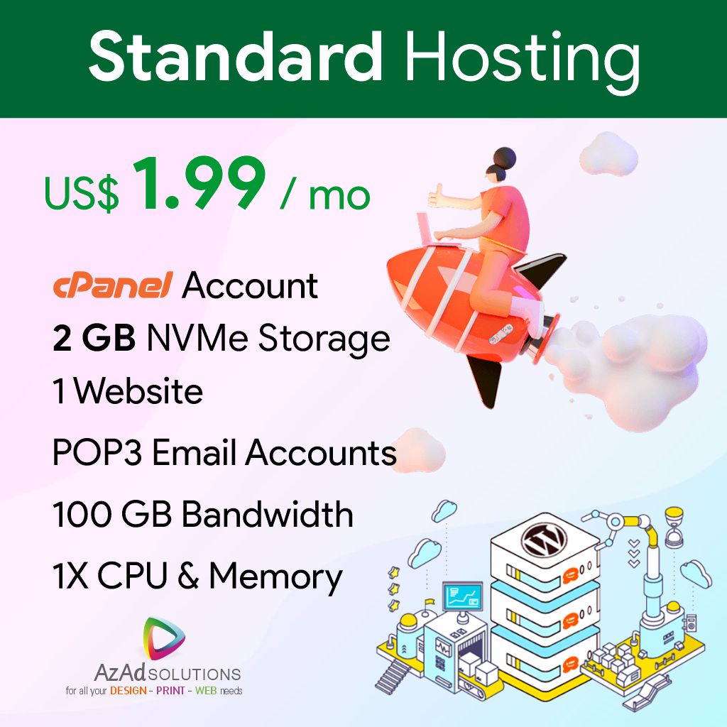 Our Standard Hosting solution offers a range of features to help you host your website, email, and other online applications. It is designed for businesses that are looking for an affordable hosting solution that is easy to set up and use. With Standard Hosting, you can create a cPanel account, host one website, and get 2 GB of NVMe storage, 100 GB bandwidth, and POP3 email accounts.